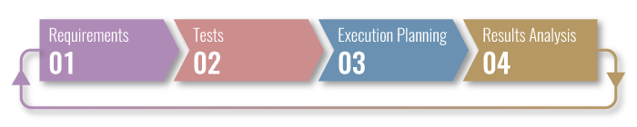 Silk Central's test management workflow consists of four major activities: Defining requirements, designing tests, execution planning