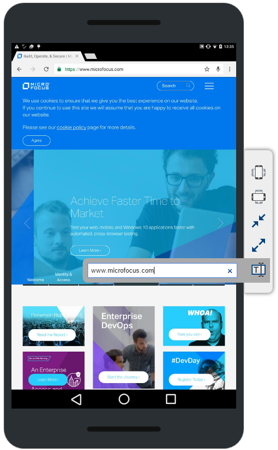 Using your mouse, you can interact with the emulated display of the device. Use the icons on the right-hand side of the display to rotate the device or to simulate the pinch-in and pinch-out actions.
